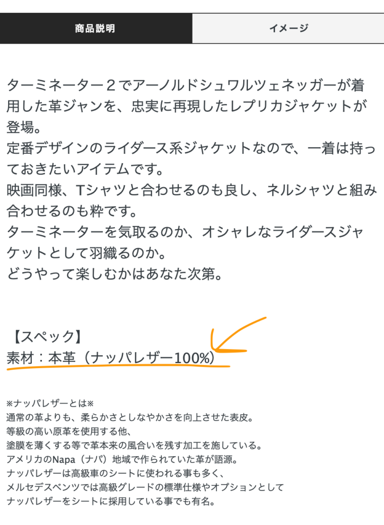 このようにナッパレザーって書いてあるのは